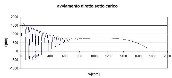 Si è ipotizzato un carico di inerzia pari a 4 volte l’inerzia del motore stesso e con una coppia resistente linearmente crescente con la velocità fino al valore nominale del motore.
