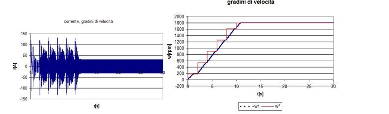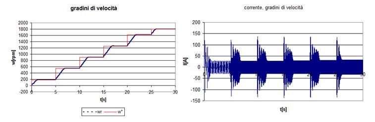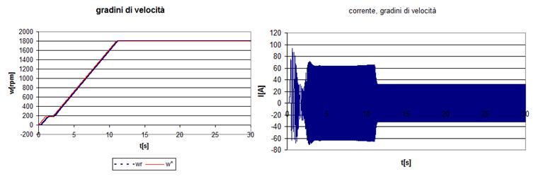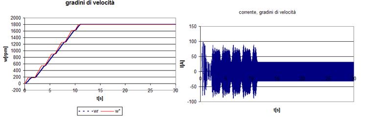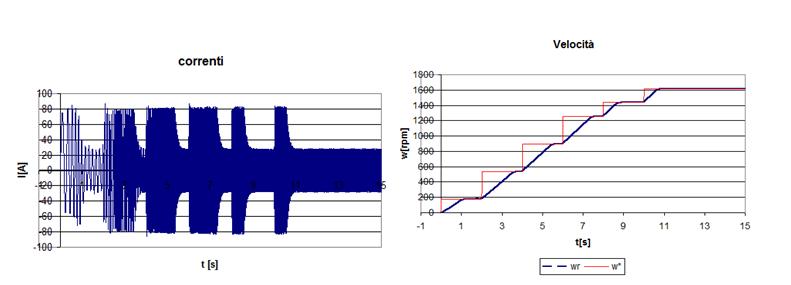 Appaiono in questo caso evidenti i limiti dinamici di questo tipo di controllo, dettati in primo luogo dalla incertezza sulla velocità di rotazione del rotore (calcolata tramite la corrente) ed in secondo luogo dalla limitazione intrinseca del controllo scalare che non considera la posizione del campo di rotore.