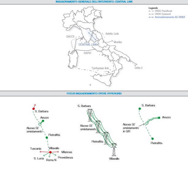 Il piano di sviluppo della rete di trasmissione 2023 prevede il rifacimento di alcune infrastrutture in alternata a 220 kV in alcuni casi risalenti agli anni ‘40 del secolo scorso, con l’impiego di sostegni a "5 Fasi", per i progetti "Central Link" e "Sardinian Link".