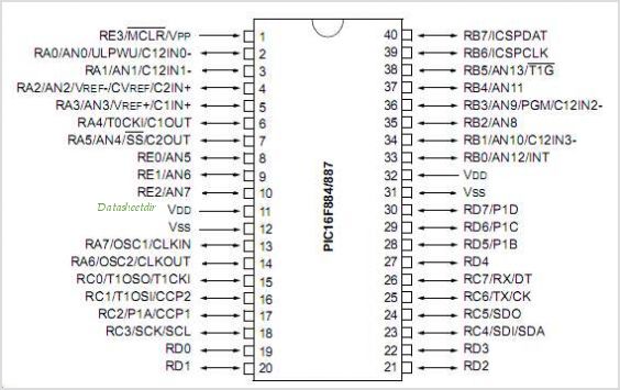 - Il PIC ha 40 pin(piedini) disposti simmetricamente su due file da 20