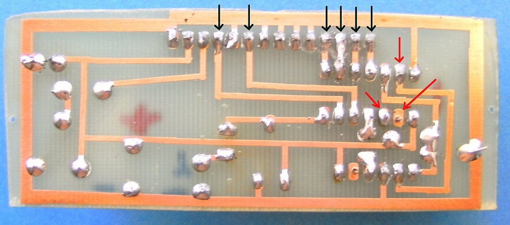 Se per le vostre operazioni vi bastano tre canali, dovrete caricare sul pic il file “dtmf decoder 3 ch.hex”; in questo caso potrete lasciare il display collegato al circuito che continuerà a visualizzare i codici in arrivo, e collegare i tre attuatori ai pin 2, 3 e 13, del pic, evidenziati nel circuito elettrico col pallino blu e sulla basetta con le frecce rosse.