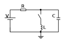 Dato quindi un RC alimentato da una tensione costante V, è chiaro che vi sarà un primo transitorio in cui C si carica alla tensione V con un andamento esponenziale