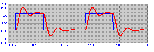 Il grafico risultante per una firma d'onda d'ingresso quadra a 1MHz è la seguente: