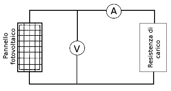 Partiamo quindi dai dati misurati da davidde su un pannello da 5Wp, con questa configurazione di prova: