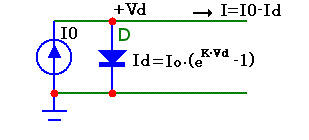 Dove I0 è la corrente in cortocircuito (Vd=0). Per tutti gli altri valoro di carico, la I in uscita stabilisce una tensione Vd che a sua volta determina la corrente Id nel diodo.