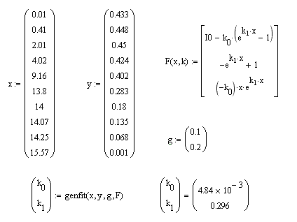 Questo richiede la determinazione dei parametri Io e K, determinazione che può essere fatta partendo dai dati sperimentali ed applicando metodi matematici di "curve fitting".