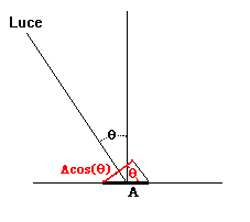Quando infatti la sorgente luminosa forma un angolo θ con la perpendicolare al pannello di area A, in realtà l'area illuminata alla stessa intensità si riduce ad A