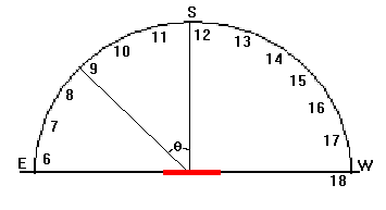 Il moto apparente del sole non è semplicemente circolare da E (est) a W (ovest) ma la sua traettoria si eleva sull'orizzonte in funzione dell'ora e della stagione.
