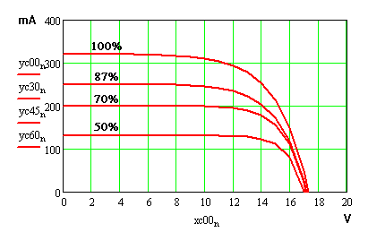 quindi dipendente da 3 parametri, i0, k0 e k1, che sono a loro volta funzione dell'intensità dell'irraggiamento, cioè della luce che colpisce il pannello.