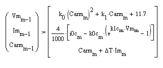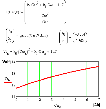 V (in V) è la tensione della batteria, funzione dello stato di carica (Car, in Ah) secondo il modello precedentemente trovato.