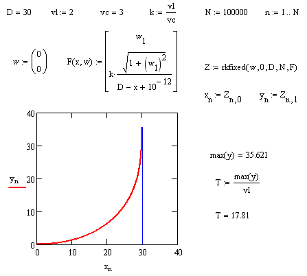 In ambienti matematici quale il MathCad, è infatti possibile ricavare l'andamento della traettoria direttamente in grafico, ricavandone così anche i parametri che servono al calcolo del tempo impiegato dal cane a raggiungere la lepre.