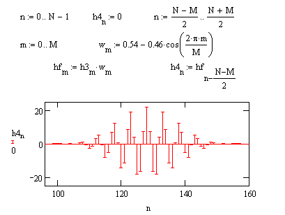 Le trasformazioni negli indici dei coefficienti servono solo a rendere possibile la moltiplicazione dei valori della finestra, wm, con i valori dei coefficienti: in pratica si trasforma la serie originaria h2, prima in h3 e poi in h4.