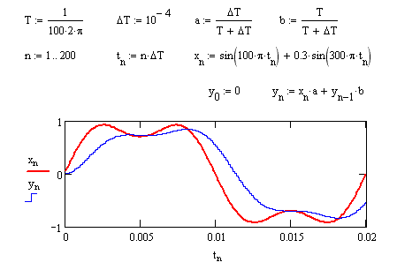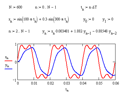 Come prova del comportamento del filtro "digitale" a confronto dell'equivalente analogico, applichiamo a questo la stessa forma d'onda (50Hz + terza armonica) utilizzata nel primo articolo;