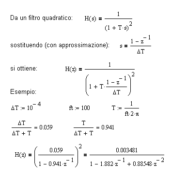 Disponendo di un'unità quadratica, consideriamo un filtro del secondo ordine, ed ecco il procedimento in MathCad: