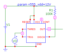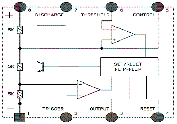 Il comparatore ha in questo modo soglie fisse a 2/3 e a 1/3 della tensione di alimentazione (quindi una "zona morta" pari ad 1/3 di questa), ma tale limitazione è ovviabile con una resistenza posta fra il Controllo (pin 5) e il comune, che abbassa entrambi i valori di soglia.