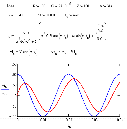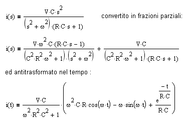 Se questo alimenta il circuito serie RC, per quanto detto sopra sarà allora: