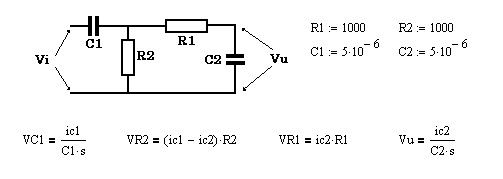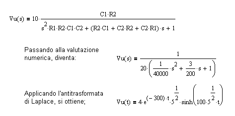 Lo sviluppo dei calcoli circuitali porta all'espressione della tensione d'uscita Vu (su C2):