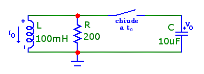 dove al tempo t0, cioè nell'istante di chiusura dell'interruttore, in L scorre una corrente