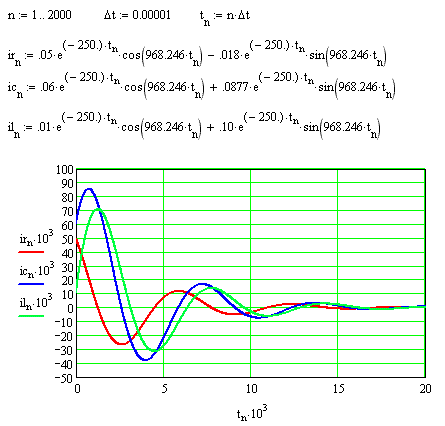 e, sempre con MathCad, non solo antitrasformare le espressioni risolventi per ottenere le i(t), ma anche tracciarne i corrispondenti grafici: