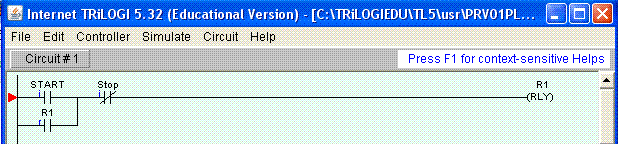 Nell'immagine è rappresentato un relè (R1) con autoritenuta comandato all'attrazione dal contato START (normalmente aperto) ed al rilascio dal contatto STOP (normalmente chiuso).