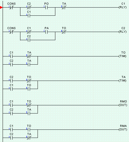 seguita dalla compilazione del circuito (in ladder diagram)