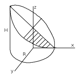 Iniziamo da un semplice esempio di calcolo della sezione obliqua di un cilindro attorno all'asse z e di altezza H, con base di raggio R sul piano x-y.