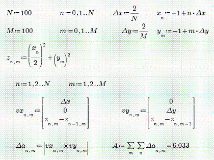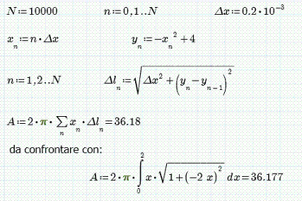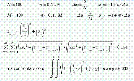 Per ottenere il valore della superficie entro i limiti stabiliti, non resta quindi che sommare gli NxM valori di Δa.