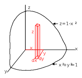 z = 1 − (x2 + y2), tenendo conto della dipendenza fra y e x. Il concetto è evidente da questa figura: