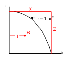 L'area delimitata dalla parabola e dagli assi z e x è notoriamente uguale ai 2/3 del'area Z.X (e del resto facilmente ricavabile come
