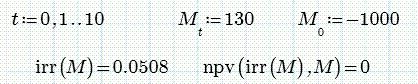 La cosa è ancora più chiara con la procedura di Mathcad, in cui le funzioni sono chiamate rispettivamente irr() e npv():