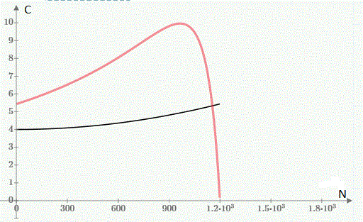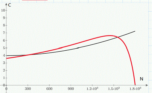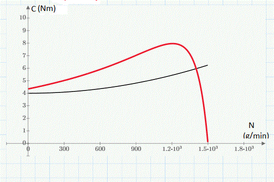 A questo punto è utile tracciare anche l'andamento della coppia resistente Cr normalmente crescente esponenzialmente con la velocità.
