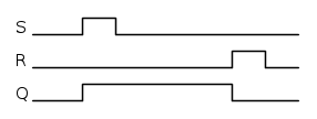 Quando interviene R, si ha il passaggio alla casella inferiore a destra, con uno stato transitorio a "0", che lo forza alla casella superiore e, alla fine dell'impulso R, ci si ritrova nella casella di npartenza.