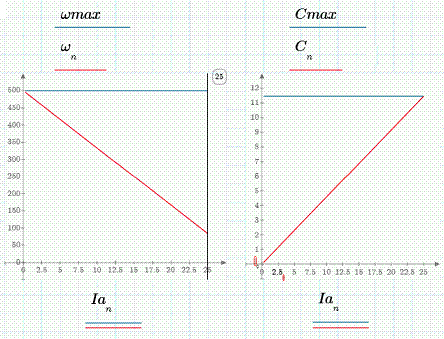 Le caratteristiche elettromeccaniche rappresentano infatti l'andamento rispettivamente della velocità di rotazione e della coppia, in funziona della corrente di armatura. Ed ecco il risultato: