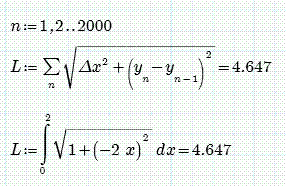 Va da sè che con questa approssimazione,la lunghezza della parabola nell'intervallo considerato (fra (0,4) e (2,0)) non è altro che la sommatoria di tutti gli n Δl.