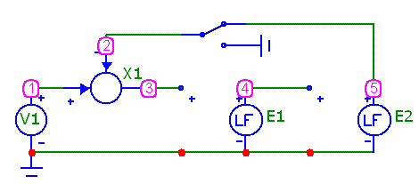 Il deviatore serve ad aprire l'anello in caso di studio delle fdt con Bode (Analysis/AC..), mentre con l'anello chiuso si ottiene la risposta nel tempo (Analysis/Transient)