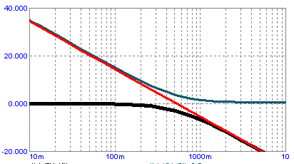 Si noti che Microcap mette in ascissa la frequenza (Hz) invece che la pulsazione ω (r/s). Nel nostro caso con T=0.3 si ha la frequenza di taglio