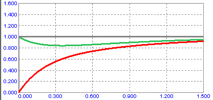 (in verde l'uscita del regolatore, in rosso l'uscita regolata)