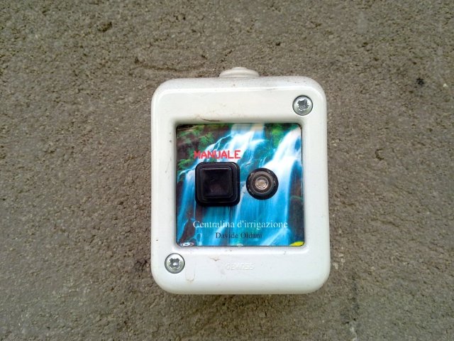 Questa scatolina è molto utile se la distanza centralina e zona irrigata è abbastanza grande. Infatti da questa interfaccia si può vedere se l’elettrovalvola è attiva (così si può vedere se ci sono problemi) e attivare l’irrigazione manuale. A me è risultata molto utile sia per fare le prove di funzionamento e sia nell’uso quotidiano (può capitare magari una giornata molto calda in cui un po’ d’acqua in più alle piante non guasterebbe).