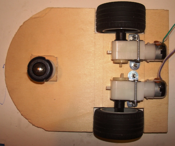 Finito con la base, potete fare un sospiro di sollievo, perché la parte più grossa del lavoro è fatta. Ora potete anche testare se il vostro "robot" va dritto. Se va perfettamente dritto siete dei maghi!! Se invece gira leggermente da una parte, non vi scoraggiate, è quasi impossibile che vada perfettamente dritto. Anche se i motori sono uguali, uno dei due andrà sempre un po' più veloce dell'altro, è inevitabile! Se invece gira di molto da una parte controllate che sia tutto a posto e date una bella sgrassata al motore che gira piano.