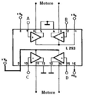 Infatti per evitare cortocircuiti causati da un errore di programmazione, è stato usato un inverter, che inverte solo un ramo del ponte, facendo in modo che siano sempre di uno stato differente. Per la scelta dei transistor, bisogna conoscere l'assorbimento massimo dei motori (vi consiglio di misurare l'assorbimento del motore, quando esso è parzialmente o del tutto bloccato). Volendo si poteva benissimo usare uno di quei comodissimi ponti H integrati. Come ad esempio il L293D di cui riporto il pinout: