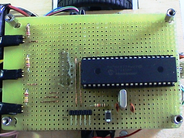 Come schema è semplice. L'unica accortezza che dovete avere è quella della posizione del quarzo al pic: devono essere il più vicini possibile, precedenza assoluta, altrimenti rischiate di avere interferenze per l'elevata frequenza e quindi comportamenti anomali del robot. Il pulsante S1 serve per il reset senza spegnere tutto il robot e il connettore ICSP serve per programmare il pic senza rimuovere il bestione dalla scheda.