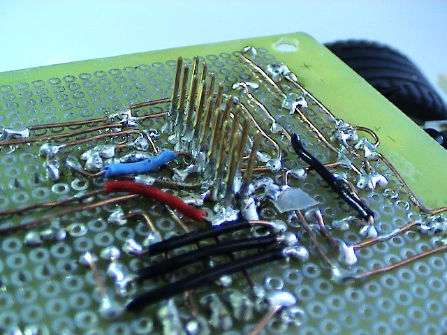Volendo, a questo punto, si può testare il circuito appena fatto, facendo dei ponticelli "volanti" nel connettore principale. Infatti collegando a massa (pin 1-2) i pin 5-6-7-8, dovreste vedere il robot avanzare indietro o avanti (dipende da come avete collegato i motori). I pin 5 e 7 controllano l'accensione e lo spegnimento del ponte H, mentre i pin 6-8 la direzione. Segnatevi tutte queste informazioni, che vi serviranno poi in seguito per programmare il vostro robot.