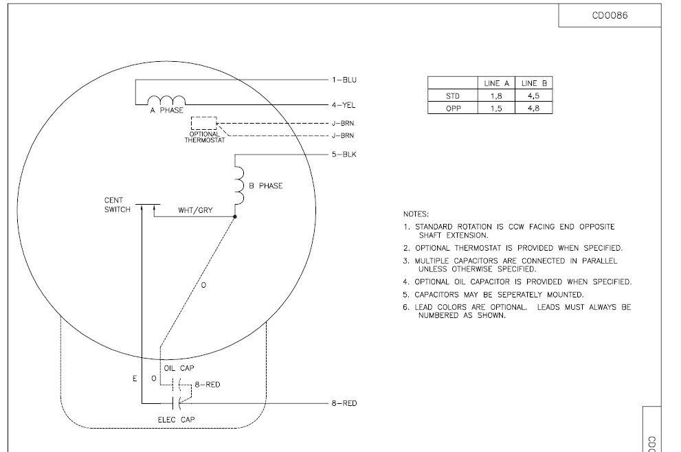 Il primo avvolgimento detto primario segnato nello schema come B PHASE e il secondo che serve solo a dare la direzione e l'inizio al campo magnetico rotante denominato A PHASE.