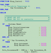 E' un pacchetto opzionale che si integra nel pacchetto Step7 Professional. Ha un proprio Editor per la programmazione, un Compilatore per trasformare il programma in codice macchina (MC7) eseguibile nelle CPU S7300/400. E un Debugger da utilizzare nelle fasi di test e collaudo. Viene utilizzato prevalentemente dai tecnici di estrazione informatica, vista la sua stretta somiglianza con il Pascal. Nelle fasi di test e collaudo in Online, denota la caratteristica tipica dei linguaggi di programmazione testuali. E cioè una minore intuitività e velocità nel trovare errori di programmazione rispetto ai linguaggi di tipo grafico. Risulta però essere molto potente, se dobbiamo utilizzare all'interno di un processo, formule complesse con relativa memorizzazione e gestione in Database multipli.In basso un estratto di una applicazione realizzata in SCL.