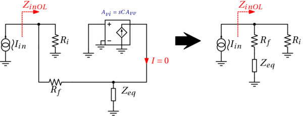 Dove Zin,OL è l’impedenza d’ingresso open loop (valutata aprendo l’anello), mentre Gloop è il guadagno d’anello (che vale − Aβ).