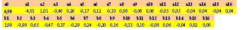 Le formule per il calcolo dei coefficienti sono: