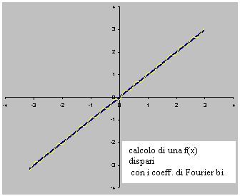 Il grafico di fig.7 evidenzia che i 32 punti della curva calcolata con la funzioni dispari coincidono con i 32 punti della funzione f(x) = x. Ciò significa che i coefficienti bi sono esatti.