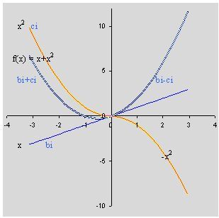 Ad esempio, consideriamo la funzione pari f(x) = x2, la funzione dispari si ottiene ruotando solo il ramo delle x positive attorno all’asse x, la funzione diventa: vedi curva azzurra del grafico