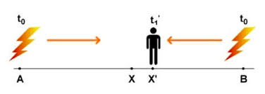 Risulta evidente che questa simultaneità non è assoluta poiché dipende dalla velocità del sistema-asta. Con tale ipotesi, quindi, la velocità della luce viene considerata isotropa per qualsiasi sistema in moto. Infatti, indicata con v la velocità del sistema, si pone che in qualsiasi direzione sia sempre: c±v = c e che la somma delle velocità sia data dalla formula: c = (c+v)/(1+v*c/c2).