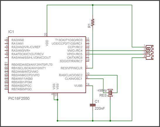 Dobbiamo settare il comportamento dei multiplexer in base al nostro oscillatore, io ho scelto un quarzo da 4 MHz, quindi i settaggi corretti (trovati dopo varie prove) sono questi: 96 MHz PLL prescaler : No Divide (4 MHz input)CPU System Clock Postscaler: [OSC1/OSC2 Src: /1][96MHz PLL Src: /2]Full-Speed USB Clock Source Selection: Clock src from OSC1/OSC2Oscillator: XT: USB-XT E’ molto importante usare XT oscillator e NON HS se usiamo un quarzo, ed inoltre che la USB lavori a 48 MHz, come stiamo facendo ora, infatti dal multiplexer con selezione siglata USBDIV sta uscendo esattamente una frequenza di 48 MHz, metà di quella generata dal PLL interno.Se non si settano correttamente questi percorsi interni con i configuration bit, win non riconoscerà proprio niente, ponendo dubbi su tutto l’intero sistema, sarà il FW che ho scritto? Sarà sbagliata qualche connessione nell’HW? …molto probabilmente non sono stati settati correttamente questi bit di configurazione.Ultima cosa molto importante e abbastanza critica, causa di molti mancati funzionamenti, è il condensatore sulla VUSB da 220nF, il valore non è critico ma è critica la sua mancanzaVediamo ora alcune immagini dell’HW e poi un video del funzionamento: